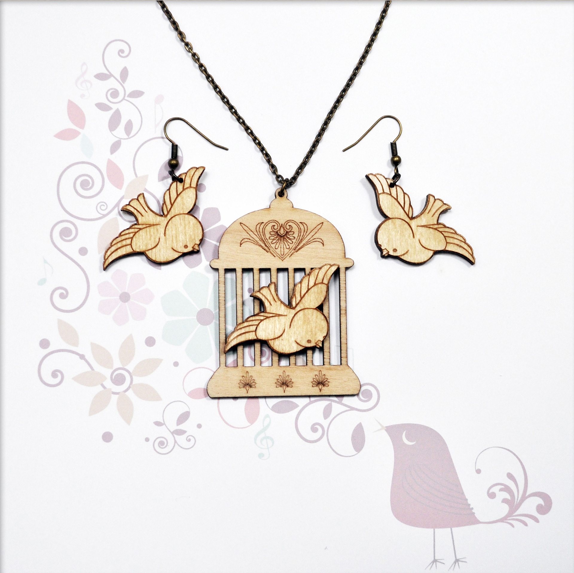 Bird on cage necklace £5.95